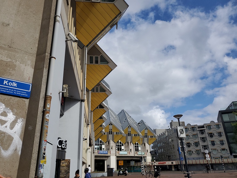 Heute bin ich alleine nach Rotterdam mit dem Zug von Marburg angekommen. Mike ist heute den vierten Tag von Marburg mit dem Radl nach Rotterdam unterwegs. Er kommt morgen nach 550 km an. Das Viertel von dem Stayokay Hostel ist das schönste von Rotterdam- Rotterdam Blaak. Da gibt es viel zu sehen. Wir wohnen in einem der Kubushäuser. Das ist toll.