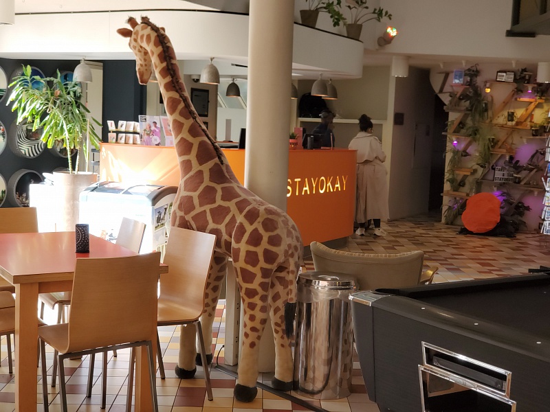 Im Hostel gibt es auch eine Giraffe.